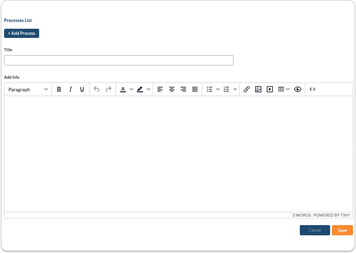2. Under the correct heading add process. Select from the drop-down box the processes you wish to add:
