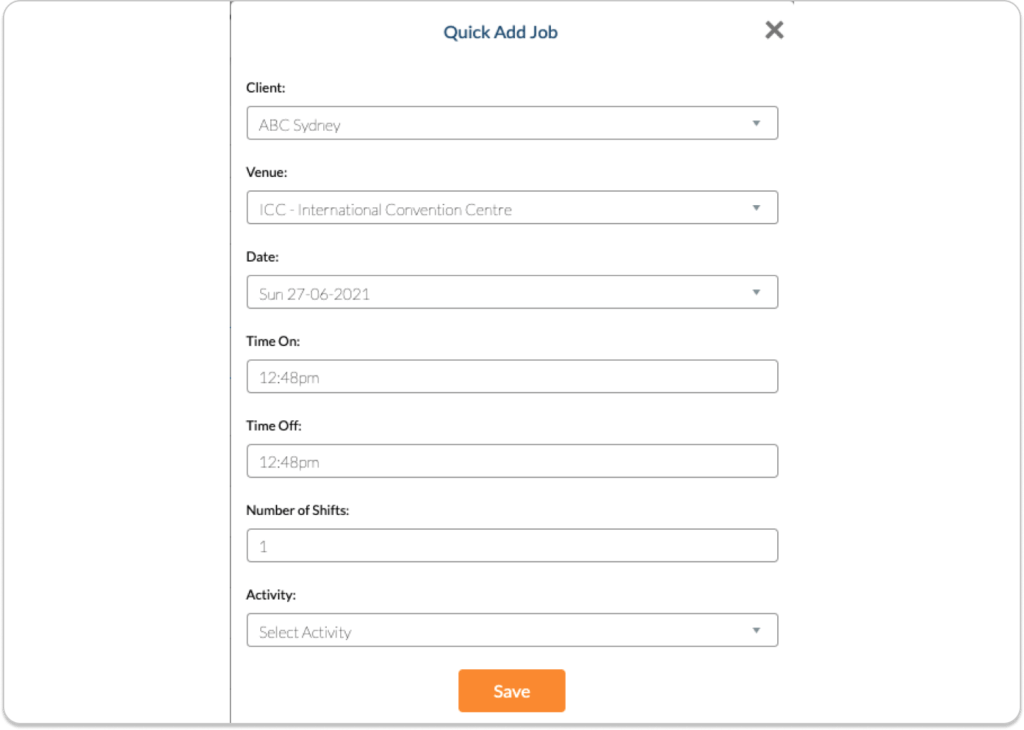 NOTE: You can only use the Quick Add system if the information for the client & venue is already in the system.