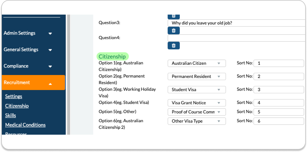 Display employment history section on Recruits Sign up: Enable this setting if you require applicants to fill in their employment history on the Sign-Up page when they first register to the system. Then you can add customised questions for that Sign-Up page.