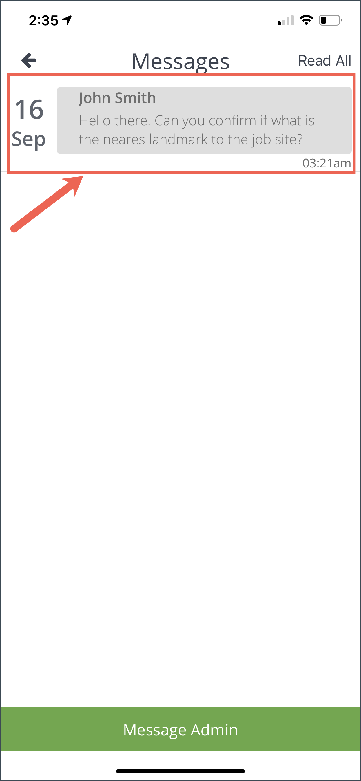 The Chat function will allow you to view the messages you have received and the ability to send messages to Admin and Crew.